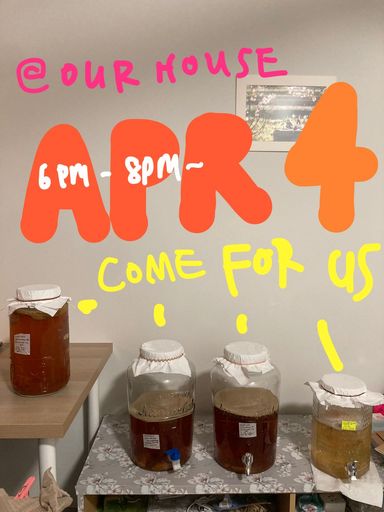 April 4, Saturday, 6 pm. If you're late, you may miss some kombucha flavors.